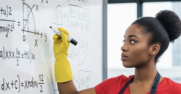 Il suo cuore iniziò a battere forte. I suoi occhi si fissarono sulla lavagna piena di equazioni complesse. Per qualche secondo si trovò combattuta. Una voce nel suo cuore diceva: “Lascia perdere, Rachel, non è affare tuo.” Ma un’altra, più forte, gridava: “Hai la capacità di risolvere questo problema.” E così accadde l’impensabile: posò la scopa, entrò nella stanza e si avvicinò alla lavagna. Le sue capacità, forgiate al MIT, iniziarono a scandagliare ogni simbolo e formula, finché non scorse un errore minuscolo e sconosciuto agli esperti.