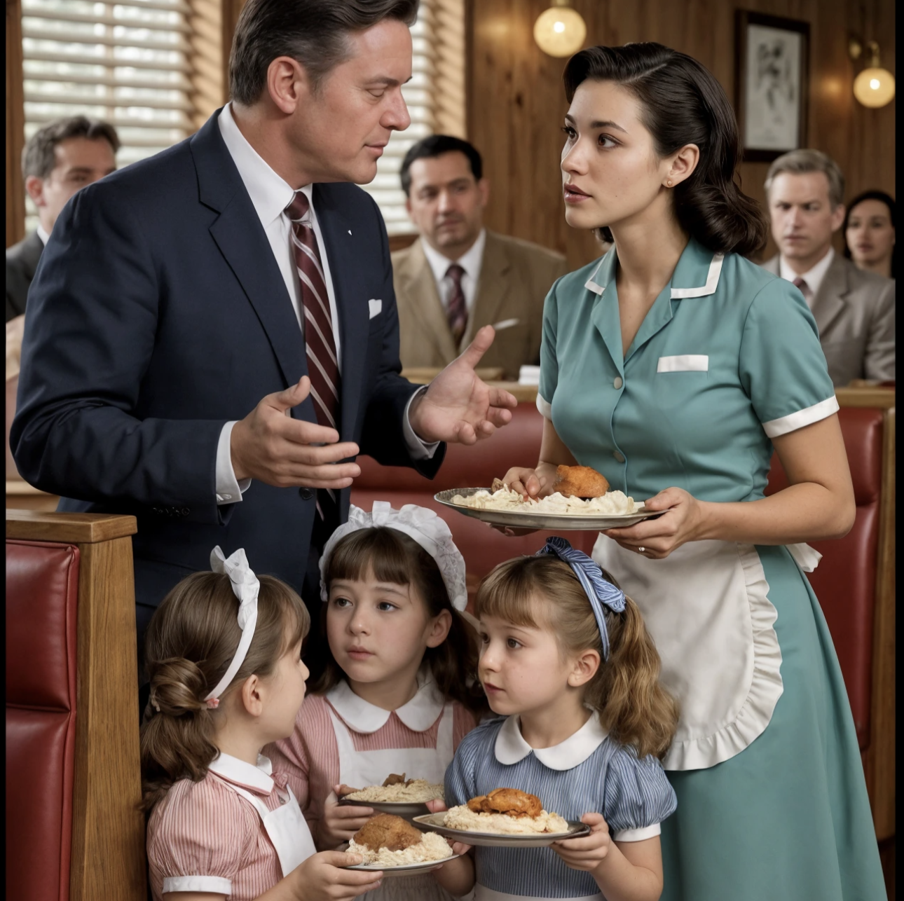 In una tranquilla cittadina, una giovane cameriera di nome Emily Parker notò, una notte di pioggia, quattro bambine rannicchiate presso il vetro del suo diner. I loro abiti erano logori e laceri, i volti pallidi e gli occhi rivelavano una sofferenza silenziosa fatta di fame e solitudine. Il cuore di Emily si serrò in una morsa: quelle piccole non avevano una famiglia né un calore domestico a cui tornare.