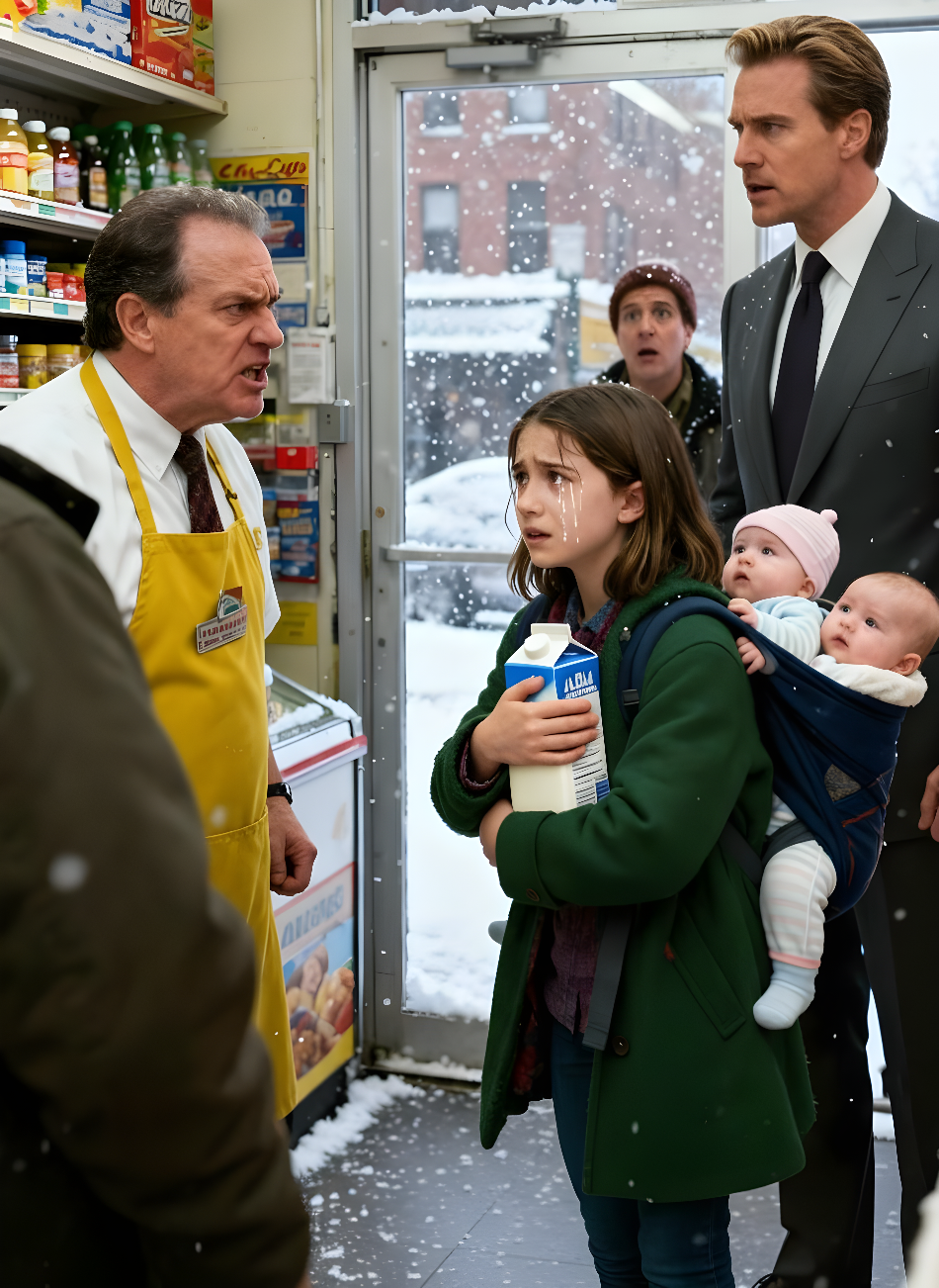 Nel cuore di Chicago, in un piccolo negozio di alimentari, una scena inattesa lasciò tutti senza parole. Una bambina di appena dieci anni, con il viso pallido e le mani tremanti per il freddo, fu allontanata con durezza dopo aver tentato di prendere una scatola di latte senza pagare. Non lo faceva per sé, ma per i suoi due fratellini più piccoli, Liam e Sophie, che l’aspettavano a casa a stomaco vuoto.