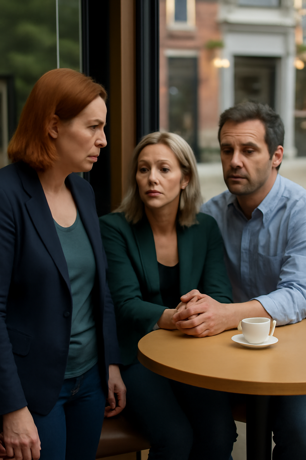 Conrad era seduto con questa donna, chiamata Mira, in un caffè del centro. Non avevo mai visto quella donna prima, ma il modo in cui lui la guardava, con un sorriso che non riservava a me da tempo, mi fece capire subito che c’era qualcosa di più di una semplice amicizia. Mira, con il suo blazer elegante e l’aspetto impeccabile, mi guardò confusa quando mi avvicinai. Non avevo bisogno di dire molto.
