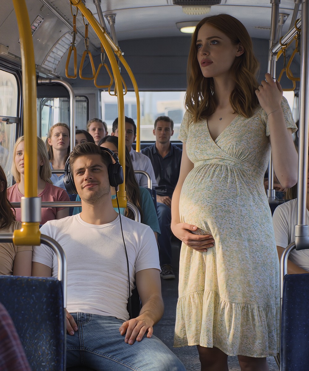 In un autobus urbano affollato, il caldo e il rumore creavano un’atmosfera pesante. I posti erano occupati, le barre di sostegno strette da mani stanche. Alla fermata successiva, una giovane donna salì lentamente. Il suo abito leggero lasciava intravedere il ventre arrotondato, segno di una gravidanza ormai avanzata. Portare la vita in un quotidiano così frenetico richiedeva grande forza, e il suo volto tradiva la fatica. Trovare un posto a sedere sarebbe stato essenziale per preservare la sua salute e quella del bambino che aspettava.